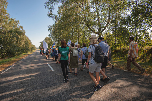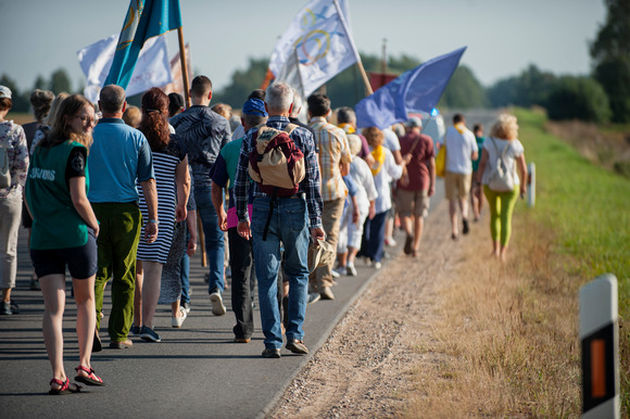 Neišgąsdinti vasaros kaitros žmonės tądien nuo rytmečio keliavo į Šiluvą pėsčiomis, su Rožinio bei Kryžiaus kelio malda, vedami ganytojų.