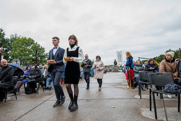 „Esame Dievo šeimos vaikai, broliai ir seserys. Džiaukimės tuo nuostabiu Bažnyčios slėpiniu! Kad mūsų gyvenime yra Dievo meilės pamatas, tad su juo mūsų širdys nesugriaunamos“, – Šiluvos aikštėje vidudienį, rengiantis iškilmingai Eucharistijai, liturginėje katechezėje sakė diakonas Benas Ulevičius.