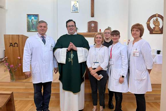 Po pietų Kauno klinikų koplyčioje buvo aukojamos šv. Mišios už Anesteziologijos klinikos darbuotojus. Kapelionas kunigas Nerijus Pipiras homilijoje dėkojo už kasdienę tarnystę ligoniams ir kvietė skausmą malšinti ne vien tik vaistais, tačiau ir šypsena.