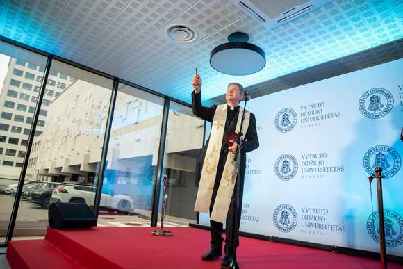 Pašventinimo apeigoms arkivyskupas L. Virbalas parinko ištrauką iš Evangelijos pagal Matą (Kalno pamokslo): „Jūs žemės druska. Jei druska išsidvoktų, kuo gi ją reikėtų pasūdyti? Ji niekam netinka, ir belieka ją išberti žmonėms sumindžioti. Jūs pasaulio šviesa. Neįmanoma nuslėpti miesto, kuris pastatytas ant kalno. Ir niekas nevožia indu degančio žiburio, bet jį stato į žibintuvą, kad šviestų visiems, kas yra namuose. Taip tešviečia ir jūsų šviesa žmonių akivaizdoje, kad jie matytų gerus jūsų darbus ir šlovintų jūsų Tėvą danguje“ (Mt 5, 13–16). Šiais Šventojo Rašto žodžiais arkivyskupas įkvėpė centre dirbsiančius dėstytojus ir būsimus studentus, kad jie patys bei jų darbai būtų šviesa, kviečianti šlovinti Dievą. Ceremonijoje taip pat dalyvavo ir VDU sielovados bendradarbių komanda: kapelionai kunigai Rastislavas Dluhý CSsR ir Peteris Hertelis CSsR bei koordinatorė Kristina Dapkutė.