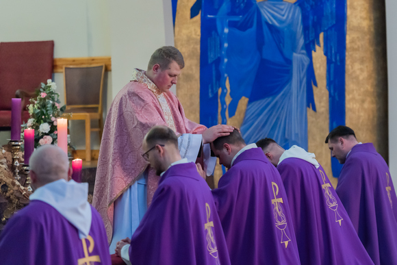 Eligijus Žakys įšventintas apaštalų ženklu – vyskupo ir kunigų rankų uždėjimu bei konsekracijos malda, prašant Dievą išlieti Šventąją Dvasią.