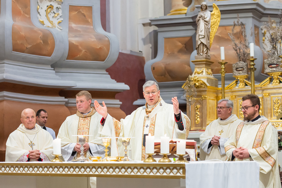 Liturgijos pabaigoje džiugų, nuolankų padėkos žodį tarė kunigas Eligijus, kuriam šventimų proga buvo suteiktas ypatingas palaiminimas.