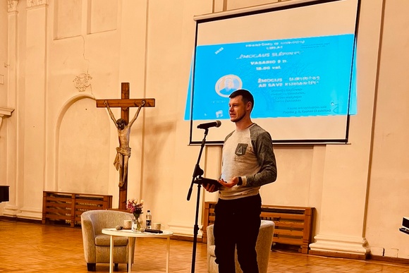 „Žmogus pašauktas būti unikaliu Dievo bendradarbiu, kiekvienas paties Dievo esam nuostabiai užmegztas mamos įsčiose. Jūs esat tokie, kokių Dievas norėjo. Esat pašaukti geriems darbams, visi esam lygus, bet skirtingi“, – dalijosi mintimis vakaro svečias.
