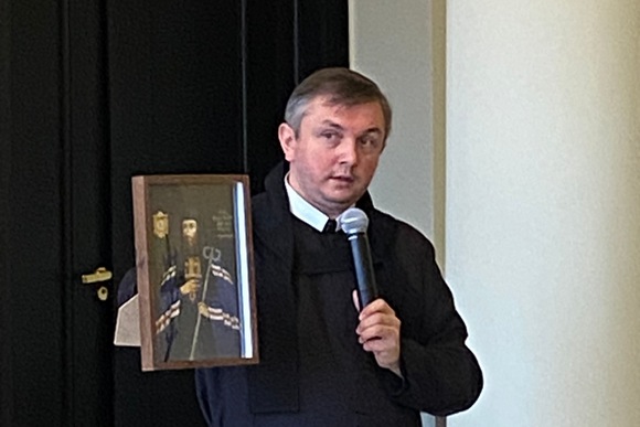 Pirmajame pranešime savo brolį šventąjį Juozapatą, nemažą gyvenimo tarpsnį nuo 13 metų praleidusį Vilniuje ir žiauriai, jau esant Polocko arkivyskupu, nukankintą už tikėjimą ir Bažnyčios vienybę, pristatė tėvas Mikolajus Ruslanas Kozelkivskyy OSBM, Vilniaus Švč. Trejybės graikų apeigų katalikų bažnyčios klebonas ir bazilijonų vienuolyno vyresnysis.