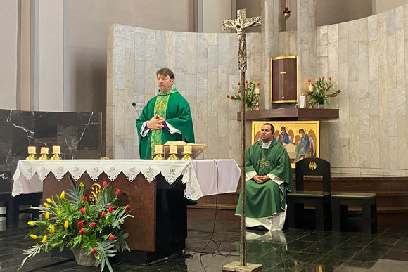 Šeštadienio šv. Mišias šventėme Švč. Trejybės (seminarijos) bažnyčioje, kur joms vadovavo arkivyskupas Kęstutis Kėvalas. Kunigas Vincentas Lizdenis, sakydamas homiliją, priminė, kad nesame tinkami skelbti Gerąją naujieną, bet Dievas veikia per mūsų silpnumus ir žaizdas (kartu su Bažnyčia tądien minėjome ir Lurdo Mergelę Mariją bei Pasaulinę ligonių dieną).