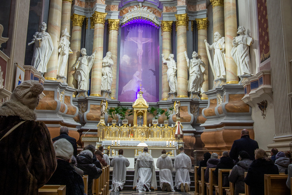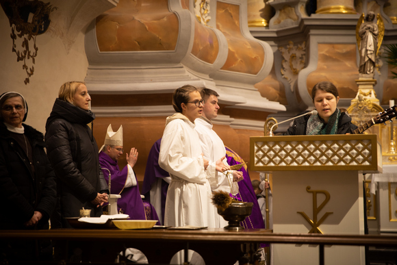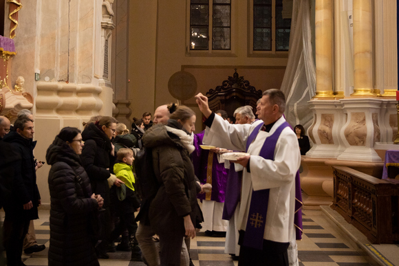 Po pamokslo arkivyskupas meldėsi už visus tikinčiuosius, kad šie su nusižeminusia dvasia, atgaila Viešpaties būtų laiminami ant galvos barstomais pelenais.