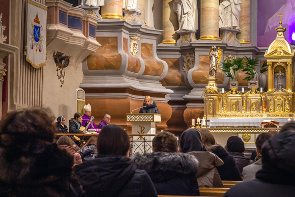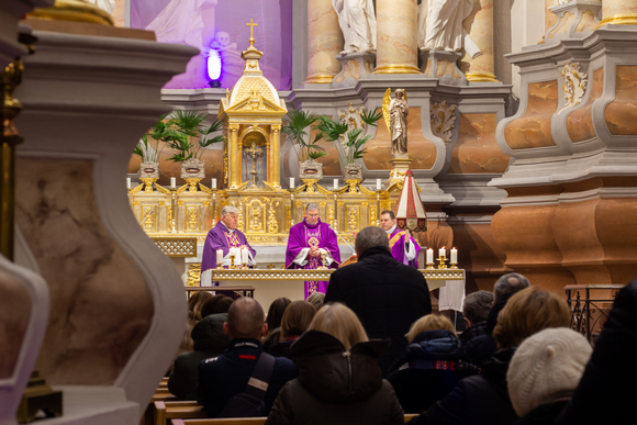 Arkivyskupas pamokslo metu kalbėjo apie atsivertimą, kuris labai svarbus mūsų Gavėnios kelionėje, kuris kvies naujai pažvelgti į savo gyvenimą, pakeisti jo kryptį, atsiverti Dievui. Gavėnia – tai galimybė, proga, o ne rūstus laikas. Gavėnia yra išsilaisvinimo laikas. Ganytojas taip pat aptarė popiežiaus Pranciškaus Žinią Gavėnios proga „Gavėnios pasninkas, Sinodinė kelionė“ bei priminė, kaip per Gavėnią yra labai svarbūs išmalda, malda ir pasninkas.
