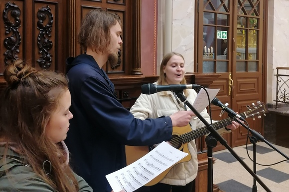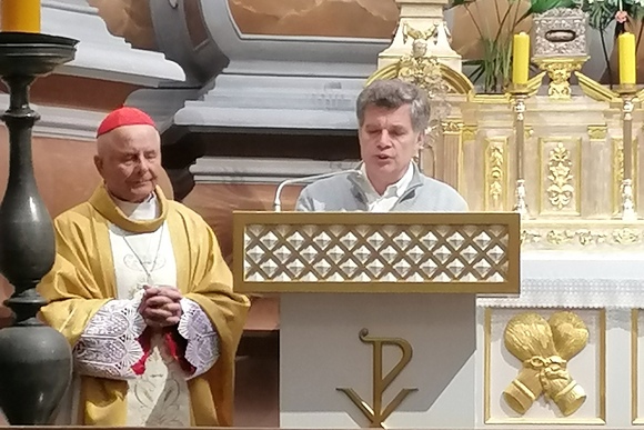 Eucharistijos liturgijai vadovavęs kardinolas Sigitas Tamkevičius SJ savo homilijoje atkreipė dėmesį į skaitinį iš Apaštalų darbų (Apd 17) apie apaštalą Paulių, buvusį nuožmų krikščionių persekiotoją, tapusį uoliausiu Jėzaus mokiniu, kuris Areopage skelbia tikrąjį Dievą – Prisikėlusį Kristų. Tačiau tik kai kurie atėniečiai priima Pauliaus skelbimą ir tampa pirmaisiais Bažnyčios nariais. Kitiems Prisikėlimo žinia lieka svetima.