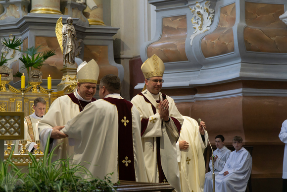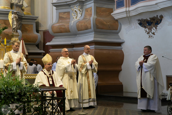 Pasibaigus šventimų apeigoms, kartu su arkivyskupu ir kitais dvasininkais kunigas Mantas Šideikis aukojo pirmąsias šv. Mišias.
