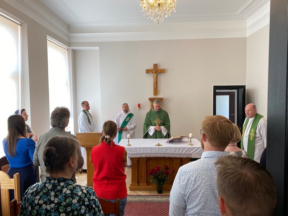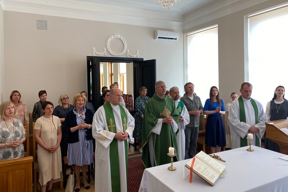 Šio susitikimo proga kurijos koplyčioje buvo švenčiamos šv. Mišios dėkojant Dievui už pagalbą vieni kitiems, bendros tarnystės džiaugsmą. Arkivyskupas Kęstutis pakvietė vėliau sielovados bendradarbius drauge papietauti.