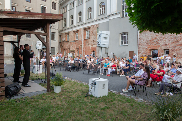 Prieš arkivyskupijos globėjo gimtadienį, kurį švęsime birželio 24-ąją, duris atveriantis arkivyskupijos kiemelis bei „Harmonija“, vadovaujama Gyčio Murausko, trečiadienio vakarą sukvietė maestro Vytauto Kernagio muzikos gerbėjus. O jais esame turbūt visi, tad ir kiemelis buvo gausus klausytojų.
