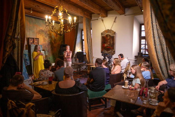 Birželio 23-iąją Misijų erdve tapo beveik visa Rotušės aikštė, nes numatytasis susitikimas apie krikščionis ir knygas vyko restorane „Antis rūsy“, kuris vasarą veikia šioje aikštėje po atviru dangumi. Vakaro svečias buvo kunigas Artūras Kazlauskas, gerai pažįstamas kauniečiams, tad sulaukęs jų dėmesio ir šįkart.