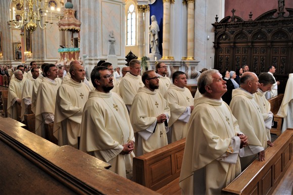 Dėkojame Gerajam Viešpačiui, kad per šiuos metus mūsų arkivyskupijoje, nuo praėjusį kartą švęstos mūsų dangiškojo globėjo iškilmės, turėjome visų trijų šventimų laipsnių – vyskupo, kunigų ir diakonų šventimų – iškilmes. Dar kartą nuoširdžiai sveikiname vyskupą augziliarą Saulių Bužauską, kuris įžengė į Kauno arkivyskupijos ganytojų gretas; nuoširdžiai sveikiname mūsų neopresbiterius jaunuosius kunigus Eligijų Žakį ir Mantą Šideikį; džiaugiamės ir dar kartą sveikiname mūsų brolius Arūną Kučiką ir Martyną Vasiliauską, tik prieš savaitę priėmusius diakonystės šventimus šiandien stojančius prie Viešpaties altoriaus drauge su kitais mūsų arkivyskupijos nuolatiniais diakonais, kurių tarnyste džiaugiamės ir dėkojame Dievui.