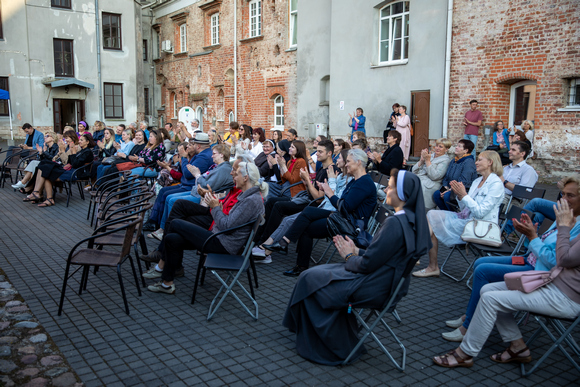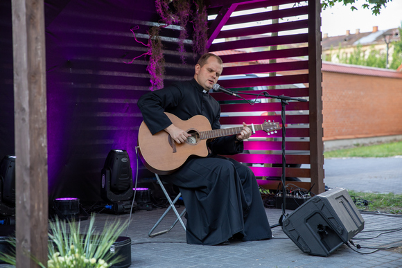 Po šv. Mišių Kauno arkivyskupijos kurijos vidiniame kiemelyje klausėmės kunigo Vincento Lizdenio koncerto bei vaišinomės agapėje. Džiaugėmės lėtu ir saulėtu vakaru gėrėdamiesi nuostabios muzikos garsais, dalydamiesi per metus sukauptomis, Dievo malonių kupinomis patirtimis.