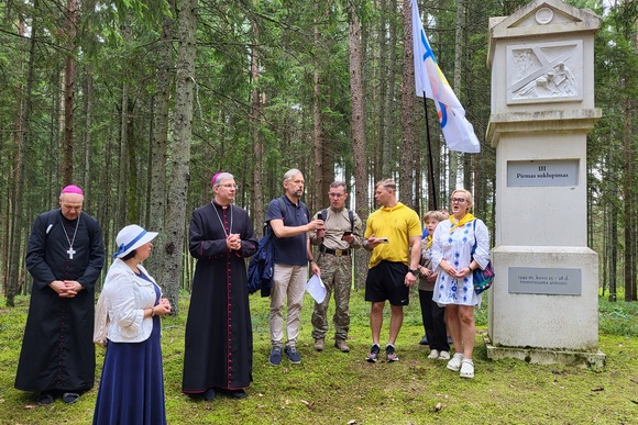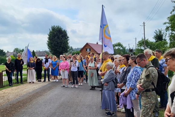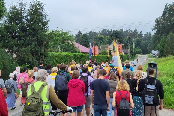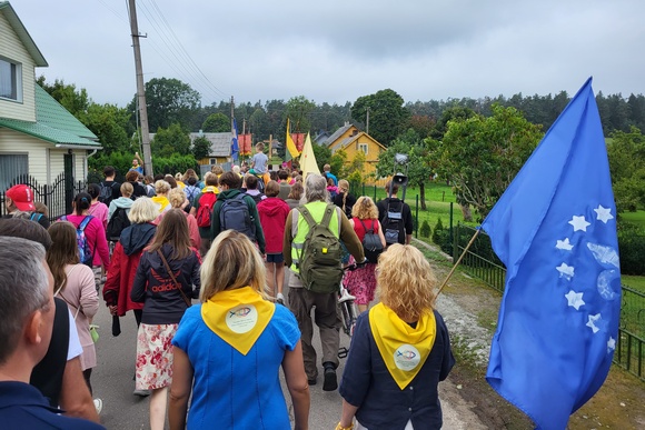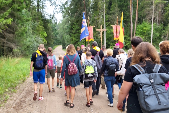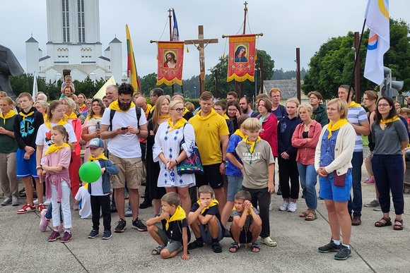 Kauno kurijos organizuotas žygis startavo prie šv. Jono Pauliaus II paminklo Šiluvoje. Su gera nuotaika, džiaugsmingai ne tik Kauno krašto piligrimai, Jono Pauliaus II piligrimų centro savanoriai, bet ir gausiu būriu, iš vakaro užbaigę tarptautinį susitikimą Šiluvoje, dalyvavusieji Dievo Motinos komandų judėjimo sutuoktiniai iš Lietuvos bei Latvijos – jaunos šeimos, daugelis ir su savo atžalomis – buvo pasveikinti Kauno arkivyskupo.