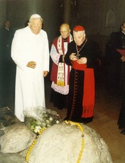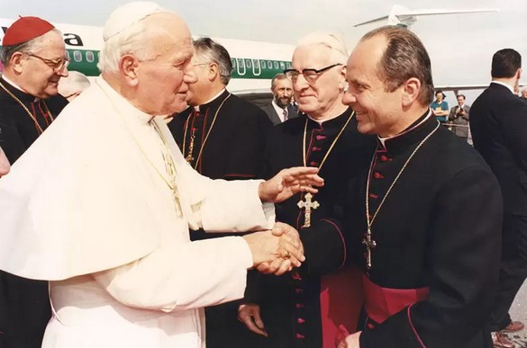 ,,Jūsų, Šventasis Tėve, atvykimas yra ryškiausias mūsų laisvės ir nepriklausomybės ženklas, – 1993 m. rugsėjo 6 d. sveikinimo žodį Santakoje tardamas kalbėjo kardinolas Vincentas Sladkevičius. – Sveikiname Jus, kaip mūsų mylimiausią Tėvą, atvykusį aplankyti savo vaikų, kaip aukščiausią Bažnyčios ganytoją ir galvą, kaip Apaštalų kunigaikštį, vykdantį didžiąją evangelizacijos misiją. Šiandien jau ne vien mintimis, bet visu savo asmenybės žavesiu ir grožiu, savo apaštališkais žingsniais, savo tėvišku gerumu ir meile, savo giliais, širdį pagaunančiais evangelizacijos žodžiais esate su mumis, esate čia, Kaune, pačiame Lietuvos geografiniame centre, galima sakyti, pačioje Lietuvos širdyje. Čia mes turime Kunigų seminariją, išlaikiusią savo gyvybę net pačiais sunkiausiais metais. Kaune yra 15 veikiančių bažnyčių, kurios kasdien, o ypač sekmadieniais, yra gausiai lankomos. Dėl to mes drąsiai galime guostis Šv. Pauliaus žodžiais: „Visaip slegiami, bet nesužlugdyti esame.“