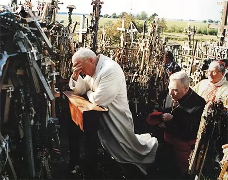 Rugsėjo 7 dieną popiežius Jonas Paulius II aukojo šv. Mišias Kryžių kalne, kur buvo susirinkę daugiau kaip 100 tūkstančių maldininkų. „Su Jumis, Šventasis Tėve ir visais susirinkusiais norime drauge pasidžiaugti ypač tuo, kad Kryžių kalnas niekuomet nebuvo vienišas, – kalbėjo kardinolas V. Sladkevičius. – Į jį traukia įvairių kartų ir net skirtingų konfesijų žmonės, ieškantys ramybės, maldingo susikaupimo ir trokštantys Dangaus išklausymo…“ Šventojo Tėvo kalbos laukė ne tik lietuvių tauta, bet ir visas pasaulis. „Klausyk, mano tauta, ko tave aš mokysiu, ką ims burna mano byloti – dėmėkis (Ps77; 78,1). Klausydamas psalmininko žodžių, štai atkeliavau prie Kryžių kalno. Ilgai laukiau šios dienos. Dėkoju dabar Dievui, kad esu čia ir galiu su jumis mąstyti apie Kristaus Kryžių ir jame slypinčius tiesos bei šviesos lobius.“ Popiežius akcentuoja Kryžiaus paslaptį, Kristaus iškėlimą per pažeminimą žmonių akyse. Ta proga Šventasis Tėvas prisiminė visus kankinius ir tremtinius. Išskyrė tuos, kurie XX amžiuje už tikėjimą aukojo savo gyvenimą: Telšių vyskupą Vincentą Borisevičių, Kaišiadorių vyskupą Teofilių Matulionį, Vilniaus arkivyskupą Mečislovą Reinį.