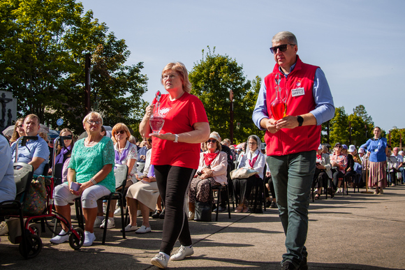 Šiluvos aikštę pirmąją atlaidų dieną, rugsėjo 8-ąją, dar prieš vidudienį pripildė piligrimai iš pačių įvairiausių Lietuvos kampelių. Daugelis jų į šią Švč. Mergelės Marijos Gimimo bei Artimo meilės ir sveikatos dieną buvo atlydėti artimųjų, slaugos ar globos namų personalo, atvyko su neįgaliuosius vienijančiomis draugijomis, organizacijomis, kad savo skausmus ir kančias atneštų Šiluvos Marijai, visų silpnųjų, sužeistų ir kenčiančių Motinai.
