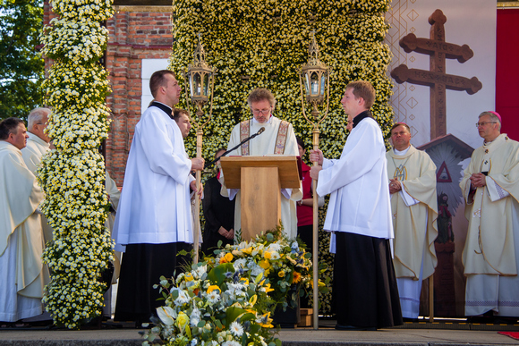 Šiuos piligrimus aikštėje pradėdamas iškilmingą Eucharistiją už ligonius bei jiems tarnaujančius medicinos, slaugos, socialinius darbuotojus pasveikino Kauno arkivyskupas Kęstutis Kėvalas.