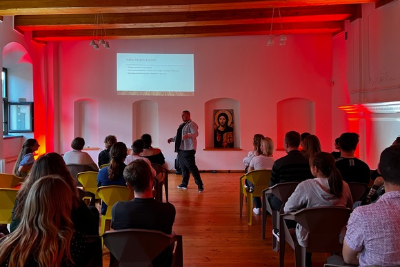 Temą „Nejaugi tai viskas?“ pristatęs tikybos mokytojas ir komikas Justinas Visickas per savo patirtį sudomino studentus ieškoti atsakymų į kylančius klausimus gyvenime ir kasdienoje. Taip pat vyko ir pirmosios pasidalijimų grupelės.
