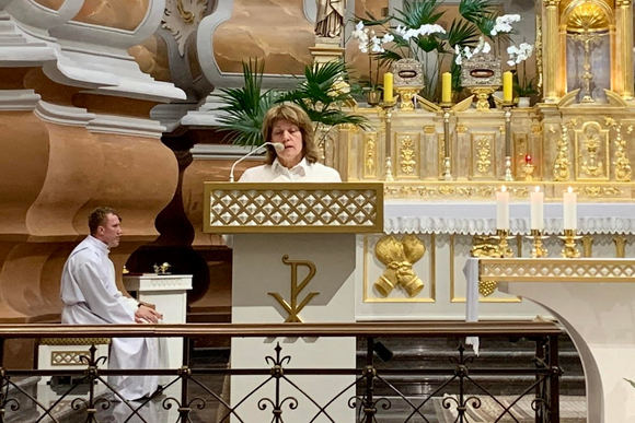 Šį mėnesį maldos vakaras prasidėjo arkikatedros klebono monsinjoro Vytauto Grigaravičiaus vadovaujama Rožinio malda prie išstatyto bei pagarbinto Švenčiausiojo Sakramento.