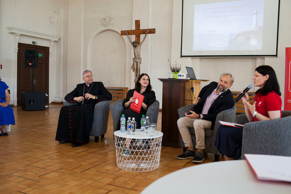 Konferencijos teminėje dalyje vyko diskusija „Kad Dievo Žodis neskęstų pasaulio jūroje: grimztu ar uždegu vilties švyturį?“. Diskusiją moderavo Kauno arkivyskupijos Carito direktoriaus pavaduotoja Milita Žičkutė-Lindžienė, o mintimis apie tai, kodėl ir kaip turime skleisti žinią apie artimo meilės darbus, dalijosi Kauno arkivyskupas Kęstutis Kėvalas, Lietuvos Carito komunikacijos koordinatorė žurnalistė Ieva Urbonaitė ir diakonas, žurnalo „Artuma“ redaktorius Darius Chmieliauskas.