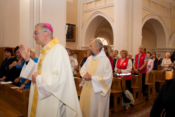 Konferencijos dalyviai šventė šv. Mišias Kauno Švč. Trejybės (seminarijos) bažnyčioje. Evangeliją skelbė ir pirmąkart Carito bendruomenei homiliją sakė naujai įšventintas diakonas Kauno arkivyskupijos Carito direktorius Arūnas Kučikas.