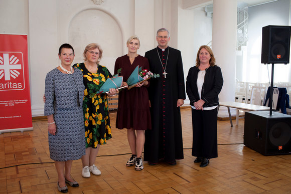 Prisidedame prie Kauno miesto savivaldybės administracijos Socialinių paslaugų skyriaus vedėjos pavaduotojos Jūratės Putnienės ir vyriausiosios specialistės Rimos Levulytės perduotos mero padėkos socialinėms darbuotojoms – Carito nuteistųjų integracijos programos vadovei Renatai Dubauskei ir Carito benamystę patiriančiųjų dienos centro vadovei Rositai Mikėnienei – bei linkėjimų, kad kitiems atiduotas gerumas su kaupu grįžtų atgal.