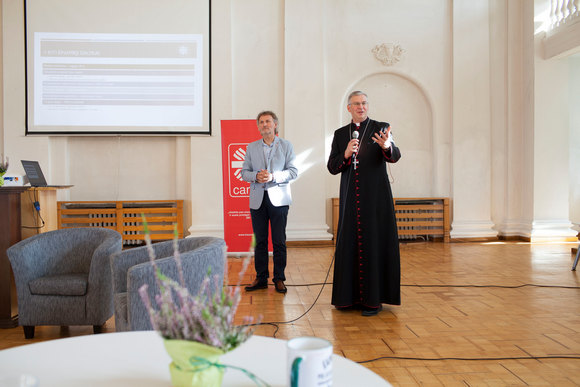 Po pietų susirinkusiems konferencijos dalyviams arkivyskupas Kęstutis Kėvalas pristatė naujai paskirtą Carito kapelioną kunigą Mantą Šideikį. Kunigas Mantas su Caritu jau turi nemažai patirčių – dar studijuodamas seminarijoje Carite atliko praktiką, o karo fone telkiant savanorius nemažai prisidėjo savanoriaudamas ir padėdamas formuojant higienos paketus.