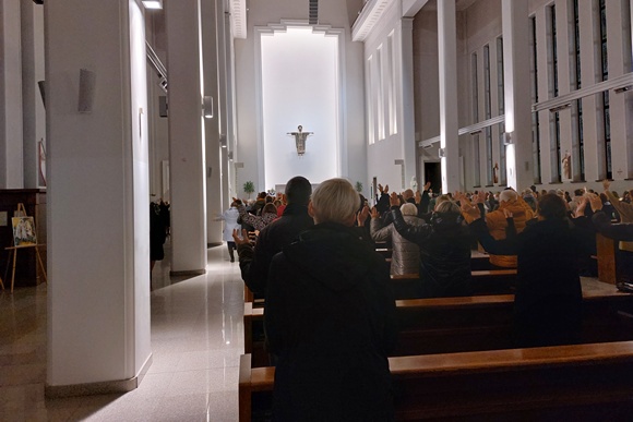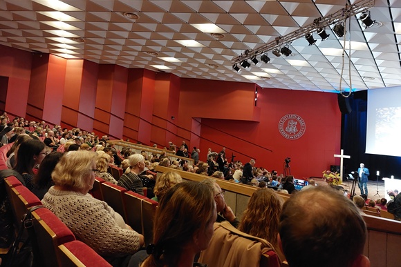 Spalio 22-ąją VDU Didžioji salė Kaune vos sutalpino šlovinančią, liudijančią ir švenčiančią Bažnyčią! Gausybė įvairaus amžiaus žmonių, jaunimo, šeimų iš pačių įvairiausių Lietuvos kampelių pasirinko Misijų sekmadienį švęsti Atsinaujinimo dienoje, pavadintoje „Degu uolumu dėl Evangelijos“.