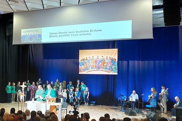 Misijų sekmadienio Eucharistiją Atsinaujinimo dienos dalyviai šventė liturgijai vadovaujant Kauno arkivyskupui Kęstučiui Kėvalui. Ganytojas nuoširdžiai dėkojo renginio svečiams – mūsų nedidelę šalį aplankiusiems misionieriams, taip pat „Gyvųjų akmenų“ bendruomenei, pasitikėjusiai Viešpačiu, kad sulauksime tokių garbių svečių Lietuvoje.