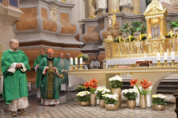 Homiliją pasakęs Kauno arkivyskupas metropolitas Kęstutis Kėvalas atkreipė dėmesį į Dievo žodį, tądien kalbėjusį apie Tėvo širdį. Dievas dalijasi su žmogumi savo laimingumu, yra parengęs kiekvienam savo pilnatvės ir džiaugsmo pokylį ir kviečia Jam atsiliepti.