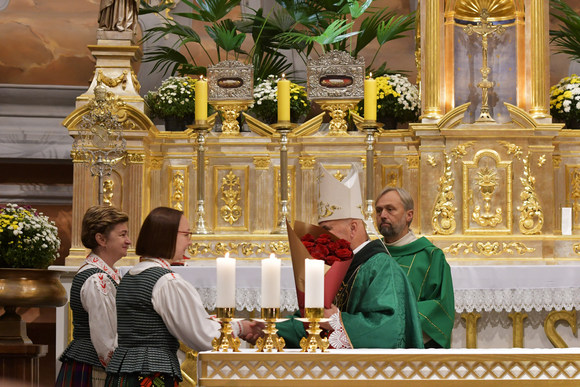 Už tarnavimą sekmadienio Mišiose, už homilijos žodį šia proga kardinolui arkikatedros bendruomenės vardu padėkojo klebonas monsinjoras Vytautas Grigaravičius, perdavęs žmonių sveikinimą ir stiprios sveikatos linkėjimus, o juos palydėjo choro sugiedotas „Ilgiausių metų“.
