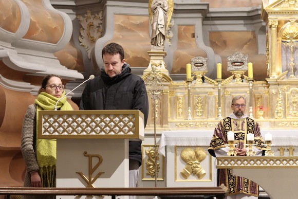 Sutuoktiniai savanoriai skelbė šių Mišių maldavimus, kuriais, be kita, pakviesta melstis už institucijų darbuotojus, už visas šeimas, jų meilės liudijimą, už karų išsklaidytas šeimas, už sužadėtinių pasirengimą Santuokai, už išsituokusius žmones bei sielovadinę pagalbą jiems.