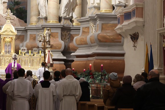 Tu pagimdysi – ganytojo mintimi, tai žodžiai ne tik Marijai. Mūsų pašaukimas gimdyti reiškia daryti regimą pasaulyje Dievo meilę. „Tu pagimdysi – Dievo žodis virsta Kūnu. Ir tai yra Kalėdų esmė“, – kalbėjo arkivyskupas, ta proga jau pasveikindamas arkikatedros lankytojus, šeimas, Mišių transliacijų dalyvius artėjančių švenčių proga.