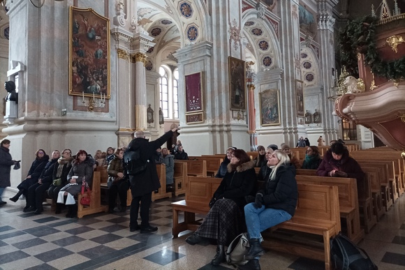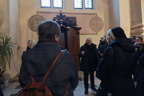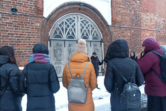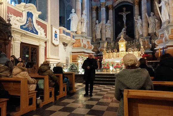 Popietinėje dienos dalyje mokytojai ir katechetai, kun. A. Kazlausko lydimi, galėjo naujai atrasti Kauno arkikatedros bazilikos dvasinius, architektūrinius lobius, susipažinti, kaip ekskursija katedroje gali tapti katecheze.