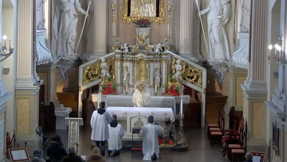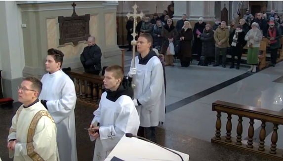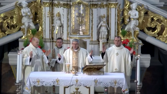 Su ramybės palinkėjimu atvykusiems piligrimams Šiluvos bazilikoje bei tiesioginių transliacijų dalyviams Eucharistiją pradėjo arkivyskupas Lionginas Virbalas SJ.