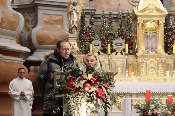 Šią visą Dievo garbintojų šeimą, kitus arkikatedros lankytojus bei transliacijos dalyvius pasveikino šv. Mišioms vadovavęs Kauno arkivyskupijos augziliaras vyskupas Saulius Bužauskas. Ganytojas pakvietė melstis už Šeimos centrą, jo darbus, iniciatyvas, už šeimas, kad jos pasinaudotų pastoracine pagalba, siūloma Kauno arkivyskupijoje.