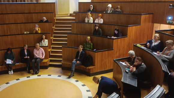 Konferencijos dalyvius, kurie atvyko į Kauno klinikas ar stebėjo nuotoliu, pasveikino Kauno klinikų generalinis direktorius prof. Renaldas Jurkevičius, LSMU Slaugos fakulteto dekanė prof. Jūratė Macijauskienė, Kauno arkivyskupas metropolitas dr. Kęstutis Kėvalas.