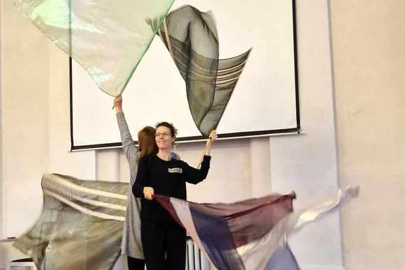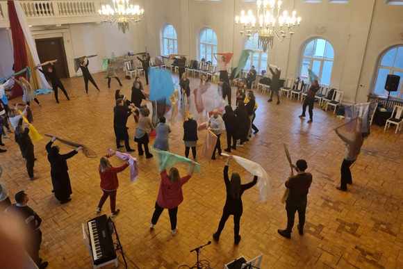 Tad seminaro metu dalyviai buvo kviečiami praktiškai išbandyti šią patirtį pasitelkiant įvairias praktikas – šokį, judesį, vėliavas tiek bendrame patyrime, tik individualiame maldos šokyje.