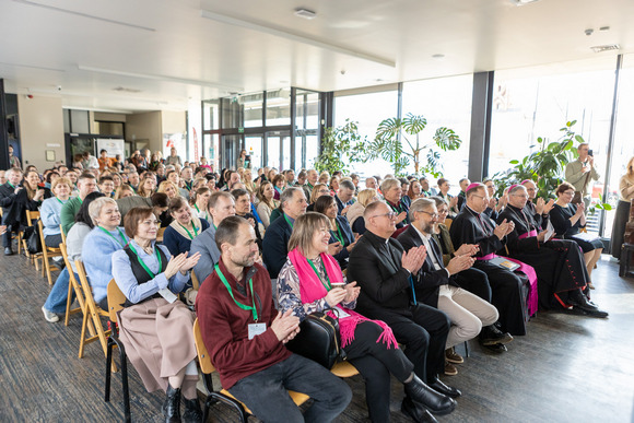 Vilniaus arkivyskupas Gintaras Grušas konferencijoje kalbėjo apie viltį. Yra „viltis, kad...“. Tai viltis, kad pasveiktų, viltis, kad išlaikytų egzaminą, viltis, kad pasisektų. Ir yra „viltis kur“. Tai viltis Dievuje prašant to, ko trokštame, bet suprantant, kad gali būti visaip. Viltis Dievuje išlieka nepaisant, kaip pasisuks reikalai. Ją įmanoma išsaugoti tik tada, kai yra artimas ryšys su Dievu. Arkivyskupas minėjo popiežiaus Benedikto XVI encikliką Spe salvi apie krikščioniškąją viltį; be kita ko, akcentavo ir popiežiaus Pranciškaus mintį: „Vis dėlto surizikuokime manyti, kad esame ne mirties agonijoje, bet gimime; dalyvaujame didingo spektaklio pradžioje, ne pabaigoje. Reikia drąsos taip galvoti.“