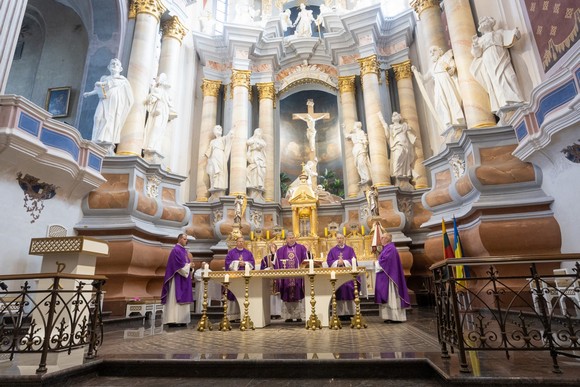 Po pirmosios konferencijos dalies šeimos susirinko į Kauno arkikatedrą baziliką. Šv. Mišių liturgijai vadovavo Kauno arkivyskupas Kęstutis Kėvalas, koncelebravo Vilniaus arkivyskupas Gintaras Grušas, LVK Šeimos reikalų tarybos pirmininkas vyskupas augziliaras Arūnas Poniškaitis, kunigai Vincentas Lizdenis ir Artūras Kazlauskas. Šv. Mišiose giedojo Alvina ir Vilius Kavaliūnai.