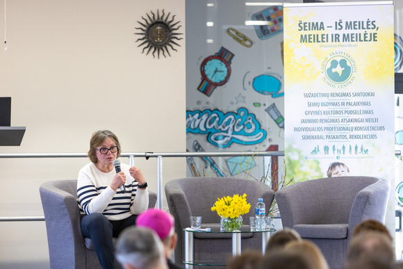Lietuvos šeimos centro direktorė Vijoleta Vitkauskienė priminė apie „Tėvų liniją“, į kurią galima kreiptis telefonu arba parašyti laišką. Tėvus konsultuoja profesionalūs psichologai, kurie padeda įveikti krizę, nes dažniausiai, kai vaikams reikia pagalbos, jos reikia ir tų vaikų tėvams. V. Vitkauskienė taip pat pristatė du naujus ir svarbius leidinius: nedidelę knygutę „Šventumas, draugiškas šeimai“ (joje trumpai ir iš esmės pristatomos šventumo šeimoje gairės – tai, apie ką konferencijoje kalbėjo Jonė su Dariumi ir kunigas Artūras) bei „Vaisingumo pažinimas – sveikatos raštingumas“ (joje poros pasakoja savo istorijas apie natūralų šeimos planavimą, pristatomi šeimos planavimo metodai bei naprotechnologija).