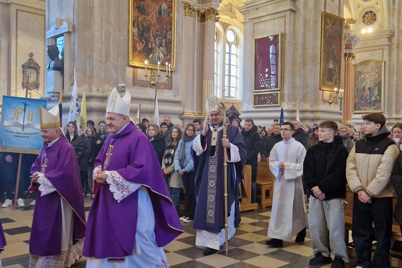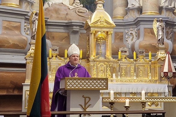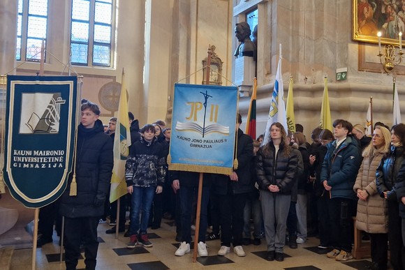 „Šiandien džiaugiamės, kad laisvoje Tėvynėje galime vieni kitus palaikyti, vieni kitiems padėti, įkvėpti ir kurti gyvenimą drauge su jaunomis širdimis, kurios įsitraukia į šį mūsų laisvės projektą“, – sakė arkivyskupas Kęstutis Kėvalas, pakviesdamas visus melstis, kad laisvę išlaikytume, kad širdys būtų atviros Dievo malonei, vedančiai per istoriją.