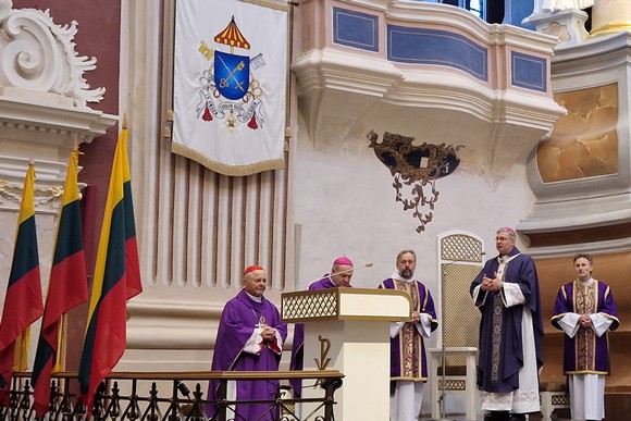 Atskirą sveikinimo žodį arkivyskupas Kęstutis Kėvalas skyrė visiems Lietuvos žmonėms, primindamas evangelinius Jėzaus žodžiai: „Drąsos! Tai aš. Nebijokite!“ (Mt 14, 27) bei šv. Jono Pauliaus II padrąsinimus Lietuvoje, nes, ganytojo mintimi, būtent tikėjimas gali tapti tvirtu pagrindu mums, kai aplinkui kylančios audros vis labiau siūbuoja mūsų kasdienybės valtis (visą sveikinimo tekstą kviečiame skaityti čia >>).