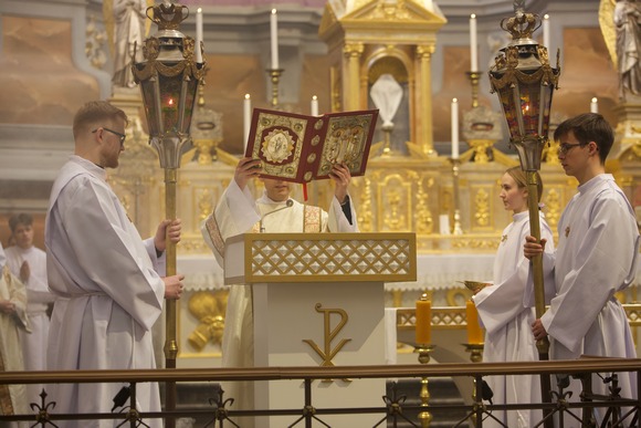 „Šiandien išsipildė ką tik jūsų girdėti Rašto žodžiai“ (Lk 4, 21) – šiuos Jėzus žodžius sinagogoje iš diakono Martyno Vasiliausko paskelbtosios Evangelijos pagal Luką pakartojo arkivyskupas Kęstutis pradėdamas savo homiliją.