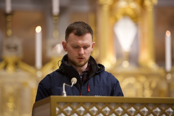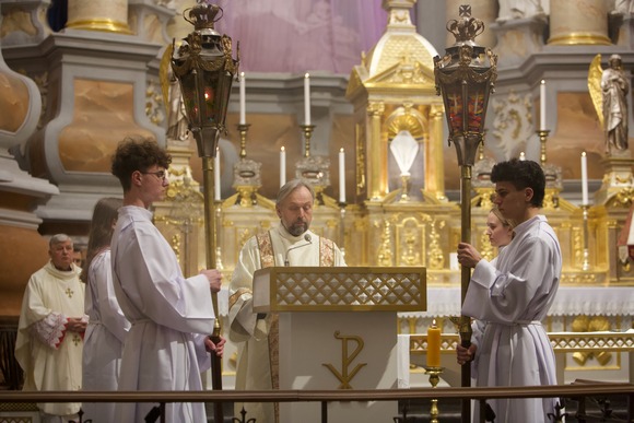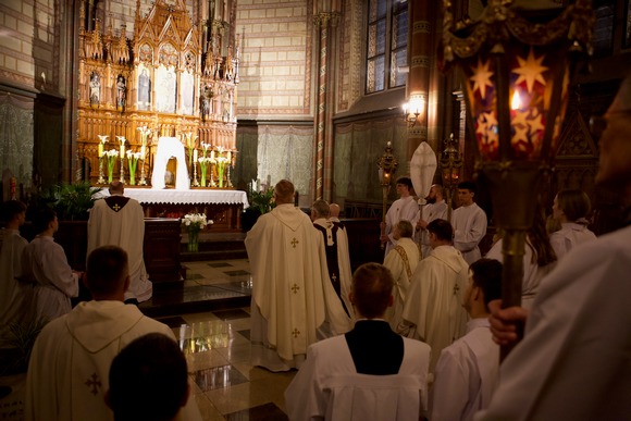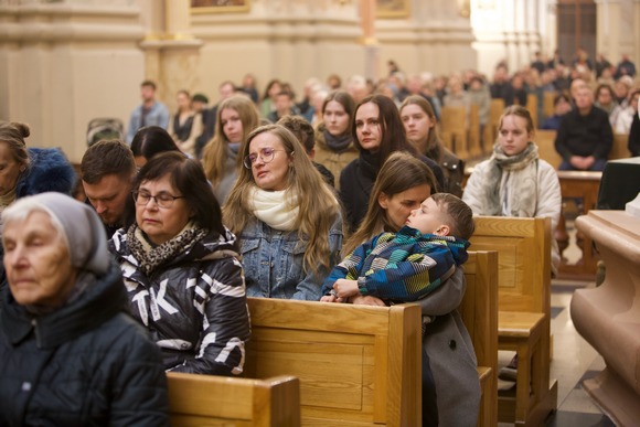 Homilijoje pabrėžta, jog šį vakarą tinka dėkoti už tuos sutiktus kunigus, kurie uoliai pasitarnavo, klausė išpažinčių, ir atsiprašyti už tuos, kuriems nepavyko atspindėti mylinčio Viešpaties. Paraginta melstis už kunigus ir už tai, kad niekas neatskirtų mūsų nuo Dievo meilės.