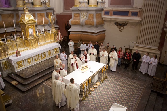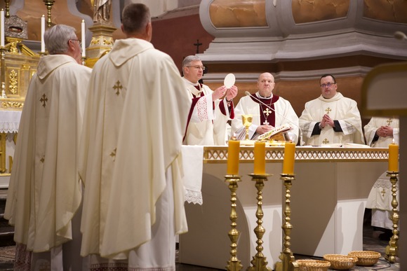 Kovo 28-osios vakarą Kauno arkikatedroje bazilikoje Didžiojo Velykų tridienio pradžią ženklino Paskutinės vakarienės Eucharistija – su atminimu, jog taip panašiai ir mokiniai, susėdę už stalo, paskutinį kartą valgė Velykų vakarienę su savo Mokytoju. Pasak arkivyskupo Kęstučio Kėvalo, šią Eucharistijos ir Kunigystės įsteigimo dieną dėkojame, kad Jėzus visiems laikams parodė pavyzdį – kaip mylėti iki galo, parodė krikščionių gyvenimo būdą – tarnavimą broliams ir seserims.