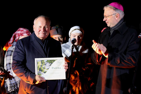Po maldų Užliedžių mokyklos pradinukų ir ansamblio „Piliarožė“ pasirodymų ant pakylos vėl užkopė K. Kėvalas ir T. Trečiokas, kurie teikė padėkas aktyviems bendruomenės nariams, statybininkams, talkininkams, Kauno rajono savivaldybės vadovams, rėmėjams – visiems, kurie darbais, lėšomis ir kitokiais būdais prisideda prie šventovės statybų.