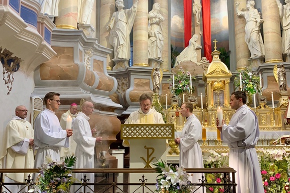 Evangeliją pagal Joną (3, 16–21) skelbė diakonas, Kauno arkivyskupijos Carito vadovas Arūnas Kučikas.